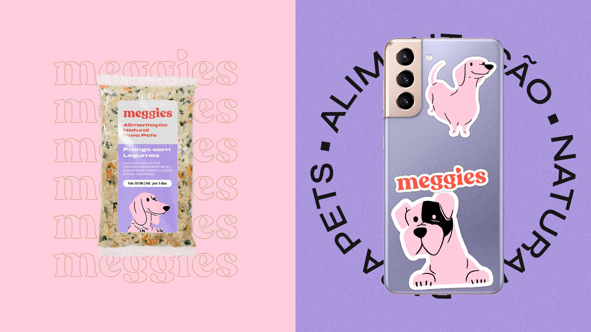 Brand Identity developed for Meggies, a Natural Pet Food brand focused on the welfare of dogs of all shapes and sizes and making life easier for their guardians.